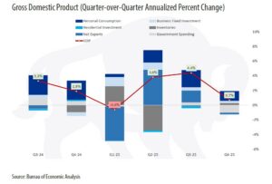 It’s Friday the 13th, and with that comes a flurry of economic data to close out a volatile week in the markets. Beginning with growth, the BEA’s second estimate of fourth‑quarter GDP was revised down to a 0.7% annualized pace from the initial 1.4%, a steep drop from the early 2.8% expectation just weeks ago and well below the 5%‑plus tracking measure from earlier in the year. The revised Q4 growth marks the slowest pace in three quarters and pulls full‑year 2025 growth down to 2.1% from 2.4%, the weakest since 2020. Government spending continued to weigh on the headline, but the bigger story was a meaningful cooling in consumption. Personal consumption was revised down 0.4% to 2.0% for Q4. Some of that softness could rebound in Q1, with the Atlanta Fed’s GDP Now measure currently tracking 2.7%, though three weeks remain in the quarter, plenty of time for shifting data and new headlines.