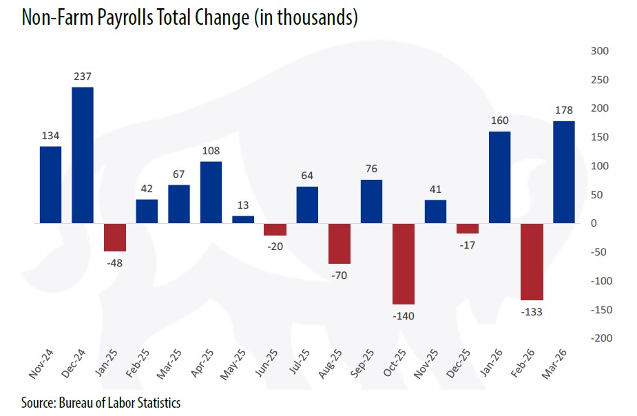 U.S. companies added +178k jobs last month, well above the +65k median forecast. At the same time, the February payroll contraction was revised lower from -92k to -133k. Although at first glance, it might appear that business hiring surged in March, the more appropriate explanation is that February was understated by striking healthcare workers and inclement weather. Both factors reversed themselves the following month. Thus, the best way to gauge labor conditions in the establishment survey is to simply average February and March, showing a rather tepid net monthly gain of +22.5k, equaling the 12-month average.