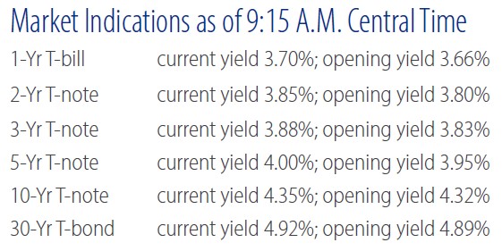 Bond yields are slightly higher in early trading, reflecting the probability that apparent improvement in labor conditions will allow policymakers to hold rates steady for longer. However, geopolitics will continue to drive the financial markets for the foreseeable future.