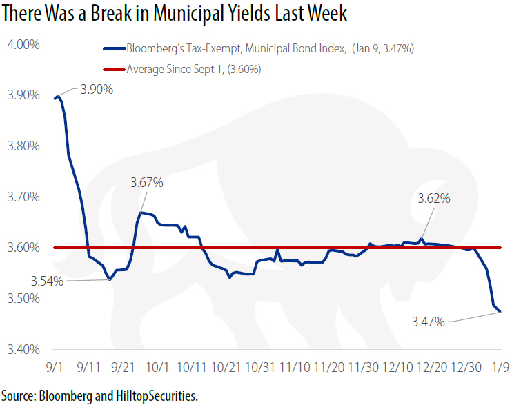 This is where it gets interesting for those focused on the municipal bond market, because of where municipal yields traveled during the first week of the year.